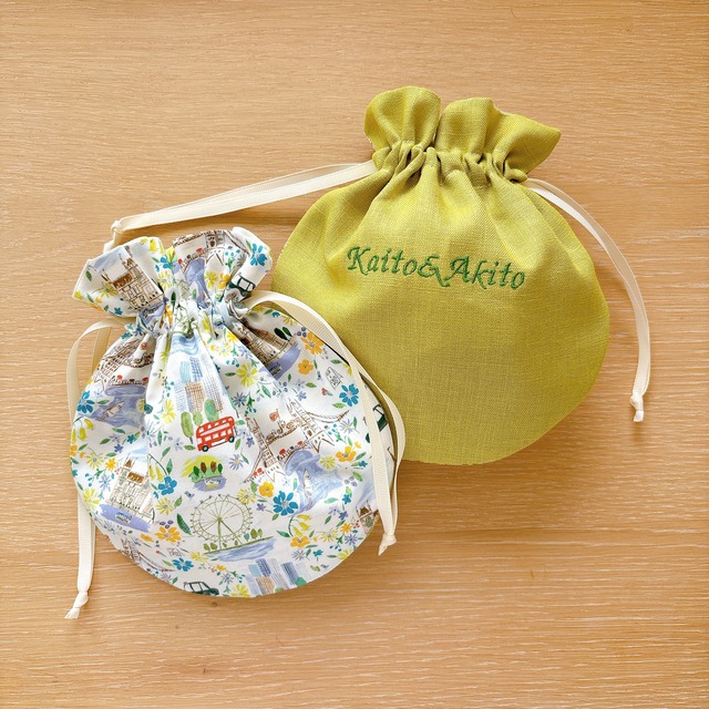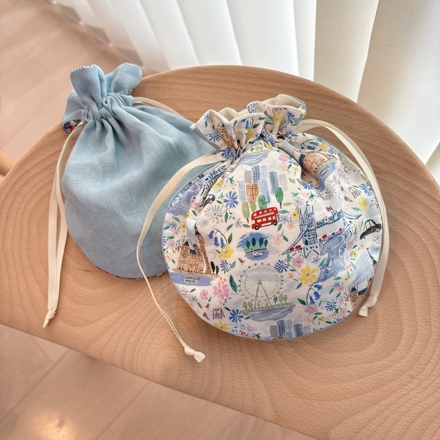 まんまるポーチ*リバティ*麻*刺繍可*名入れ*丸