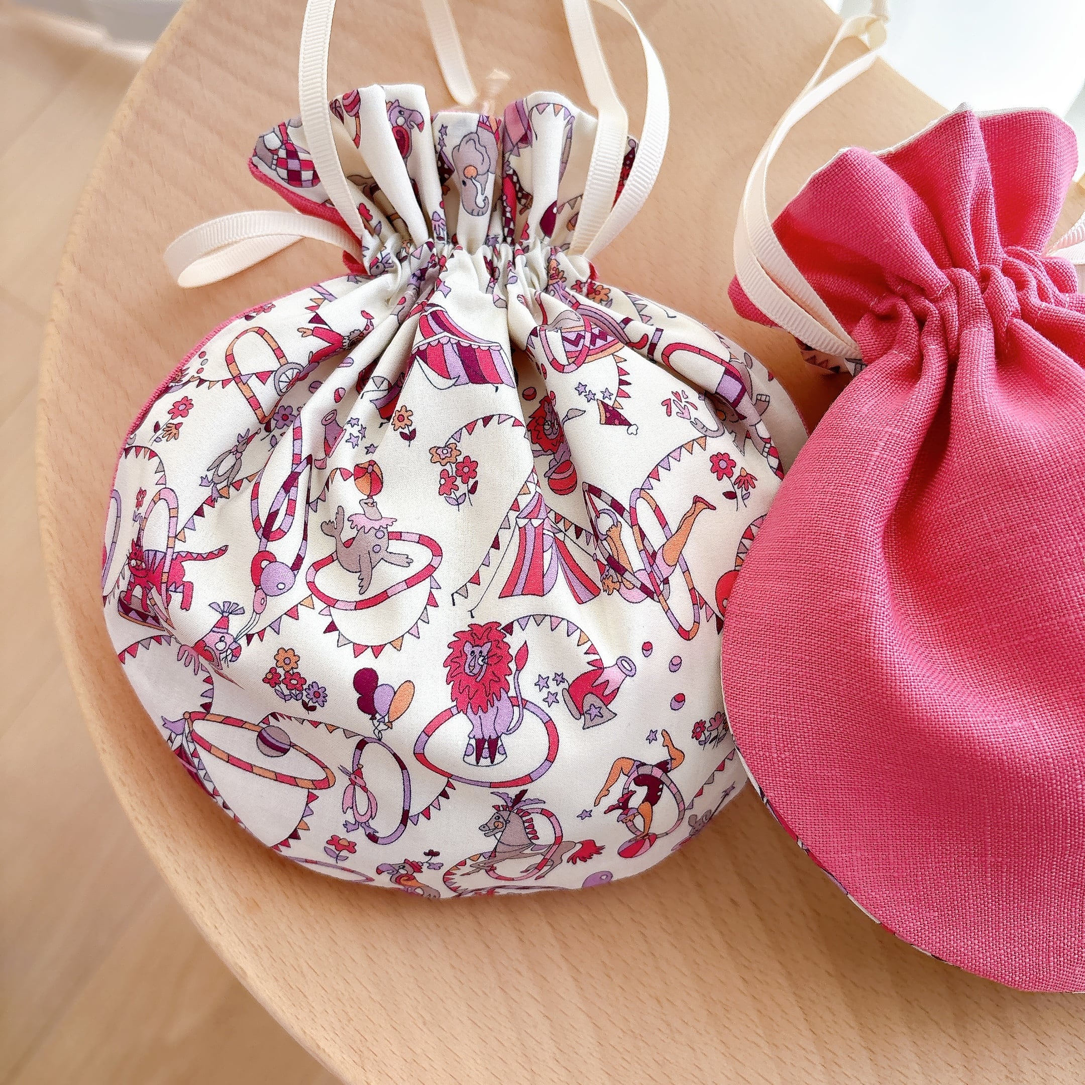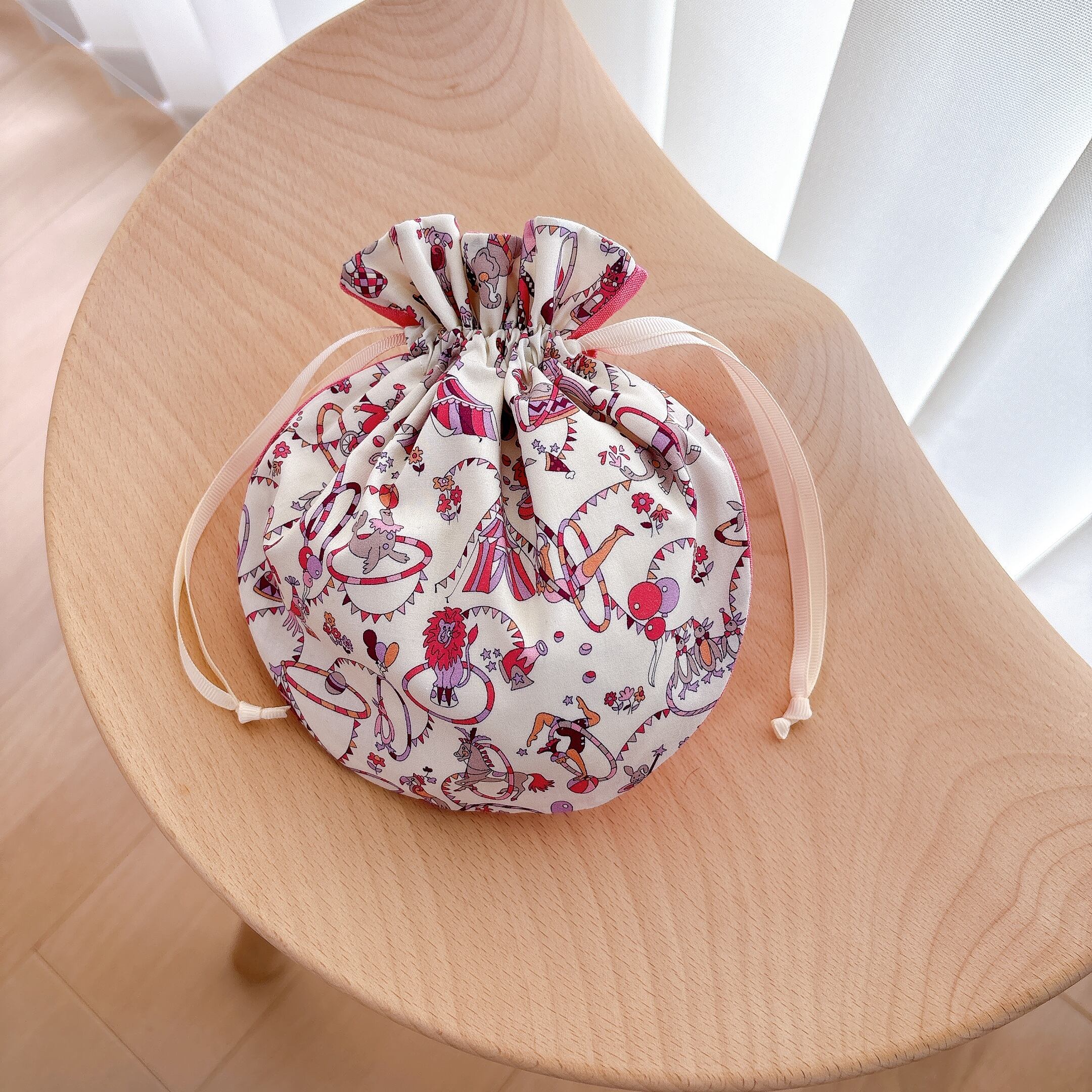 表と裏で生地が違い、ころんとかわいいのがこのポーチのポイント。